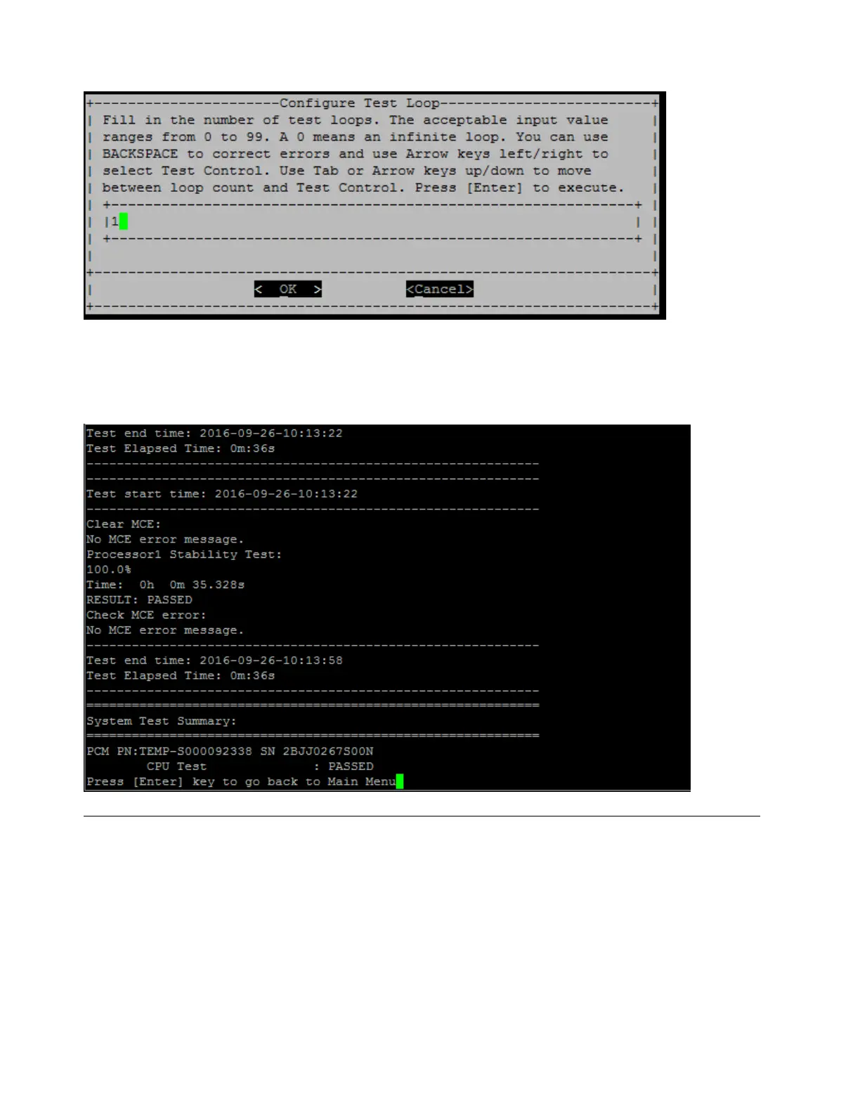 To run one test loop only, retain the default "1" value, press "Tab" to switch contexts to the control panel,