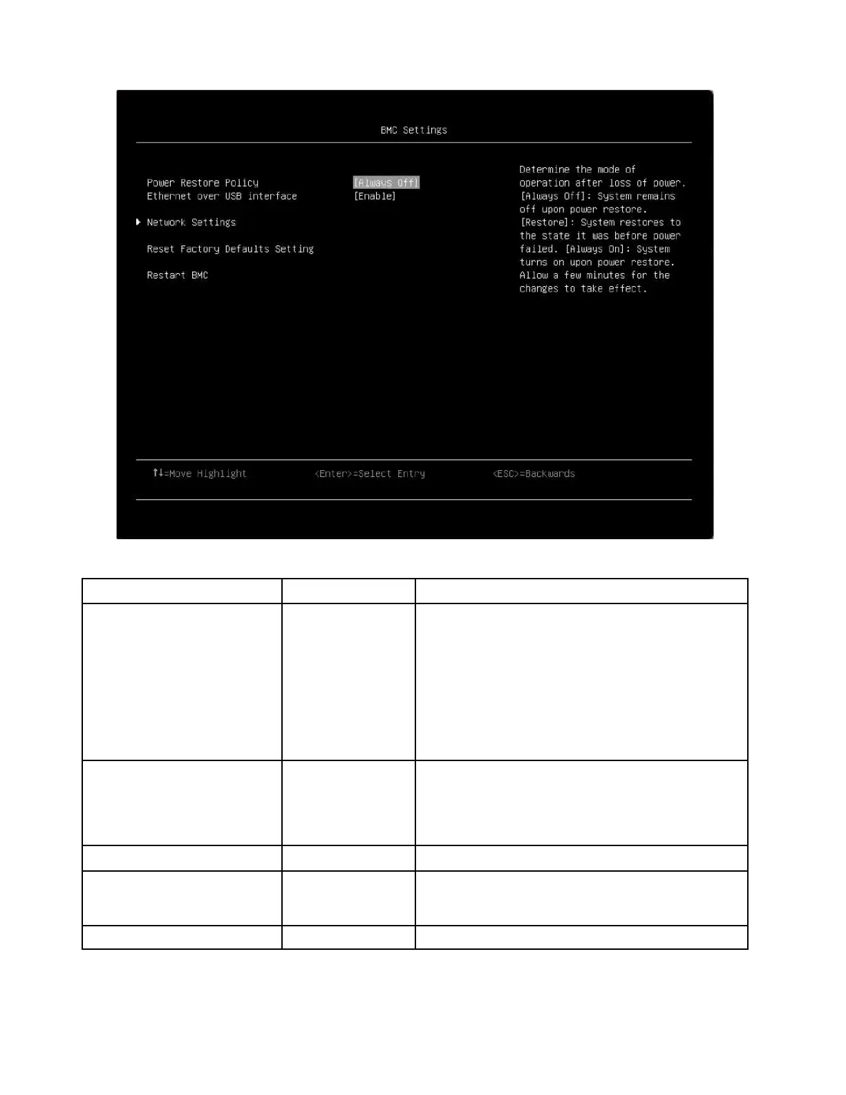 Reset Factory Defaults Setting N/A Restore all management controller settings to factory
