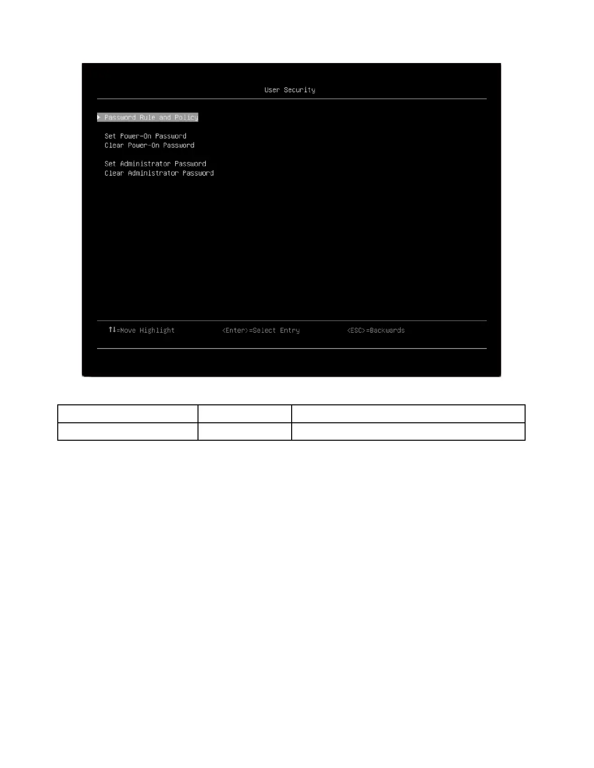 Table 15. User security details