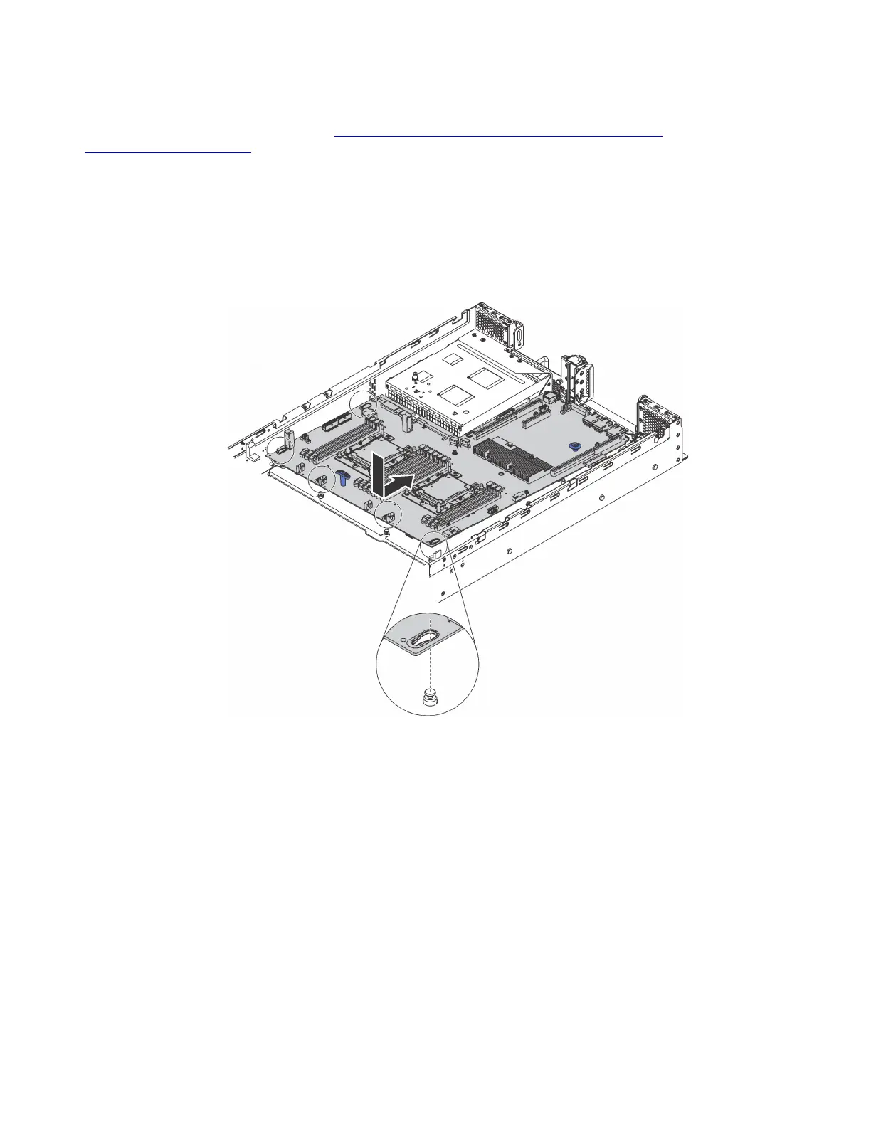 the server. Ensure that the rear connectors on the new system board are inserted into the