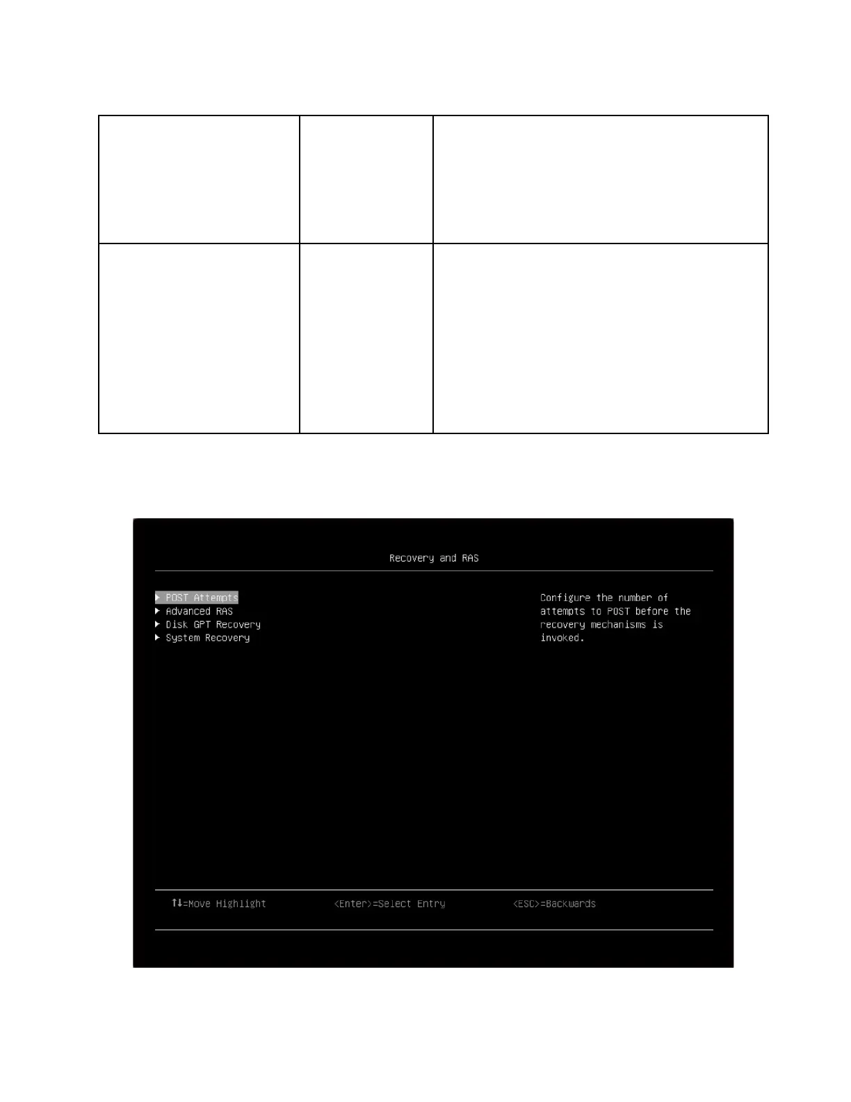 Use this menu to configure recovery policies and advanced reliability, availability, and serviceability settings.