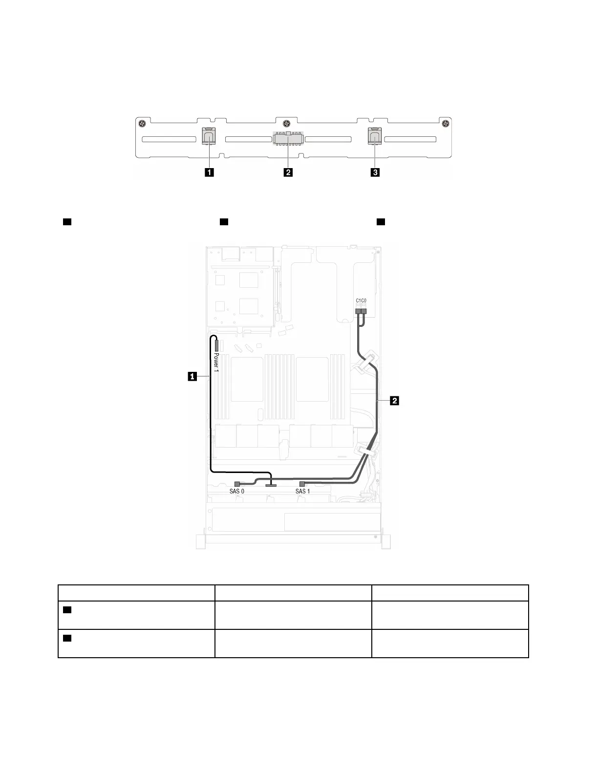 2 SAS signal cable SAS 0 and SAS 1 connectors on the