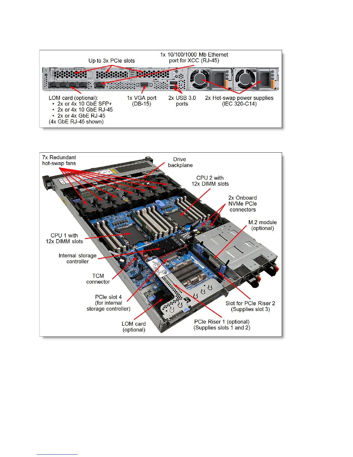 The following figure shows the rear of the SR630 server with three PCIe low profile slots.