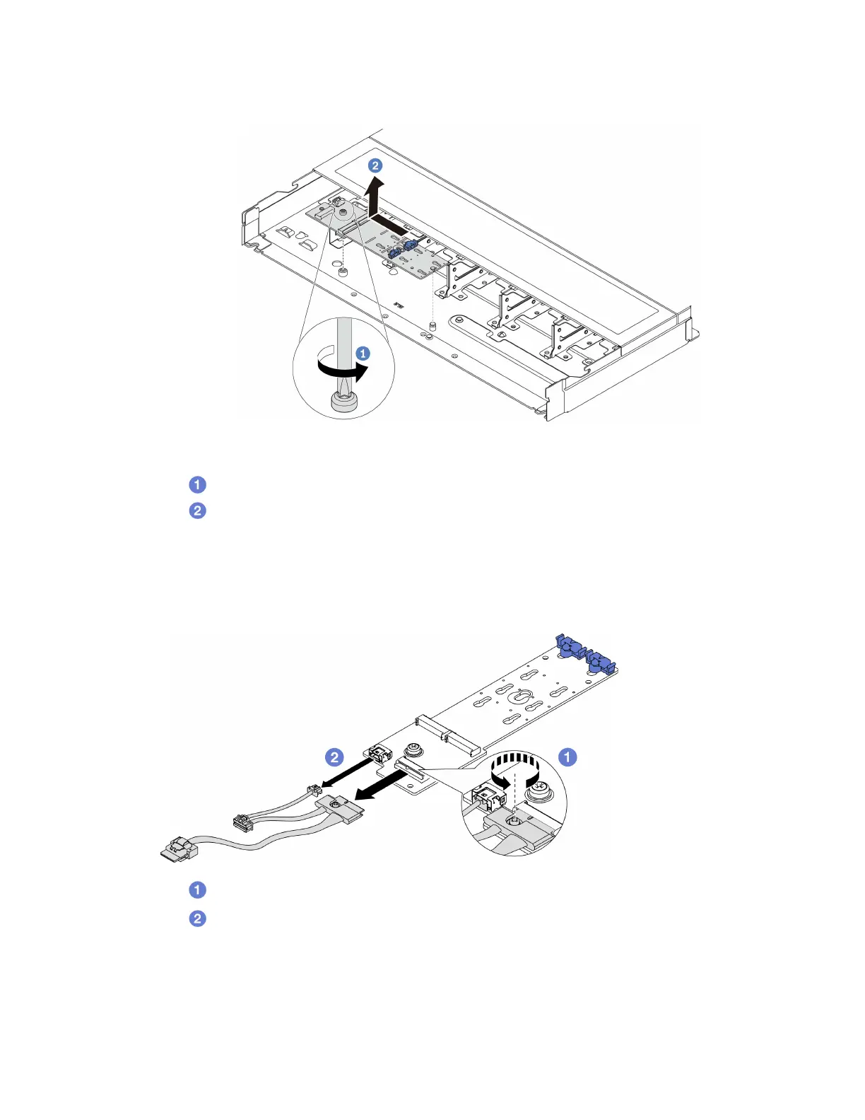 If your server installs a M.2 PCIe 3.0 backplane, see the following to remove the cables:
