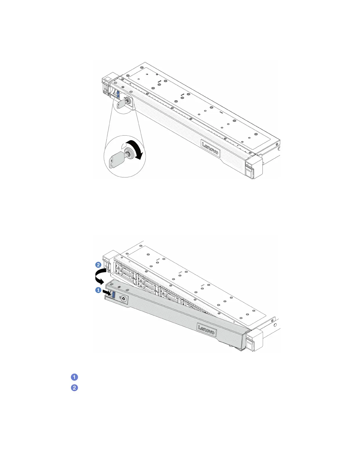 Attention: Before you ship the rack with the server installed, reinstall and lock the security bezel