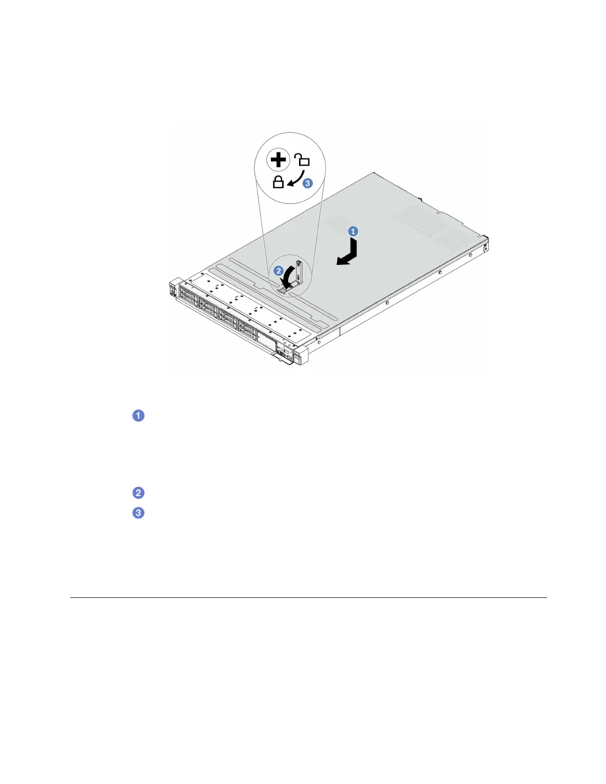 Ensure that the cover latch is in the open position. Lower the top cover onto the chassis