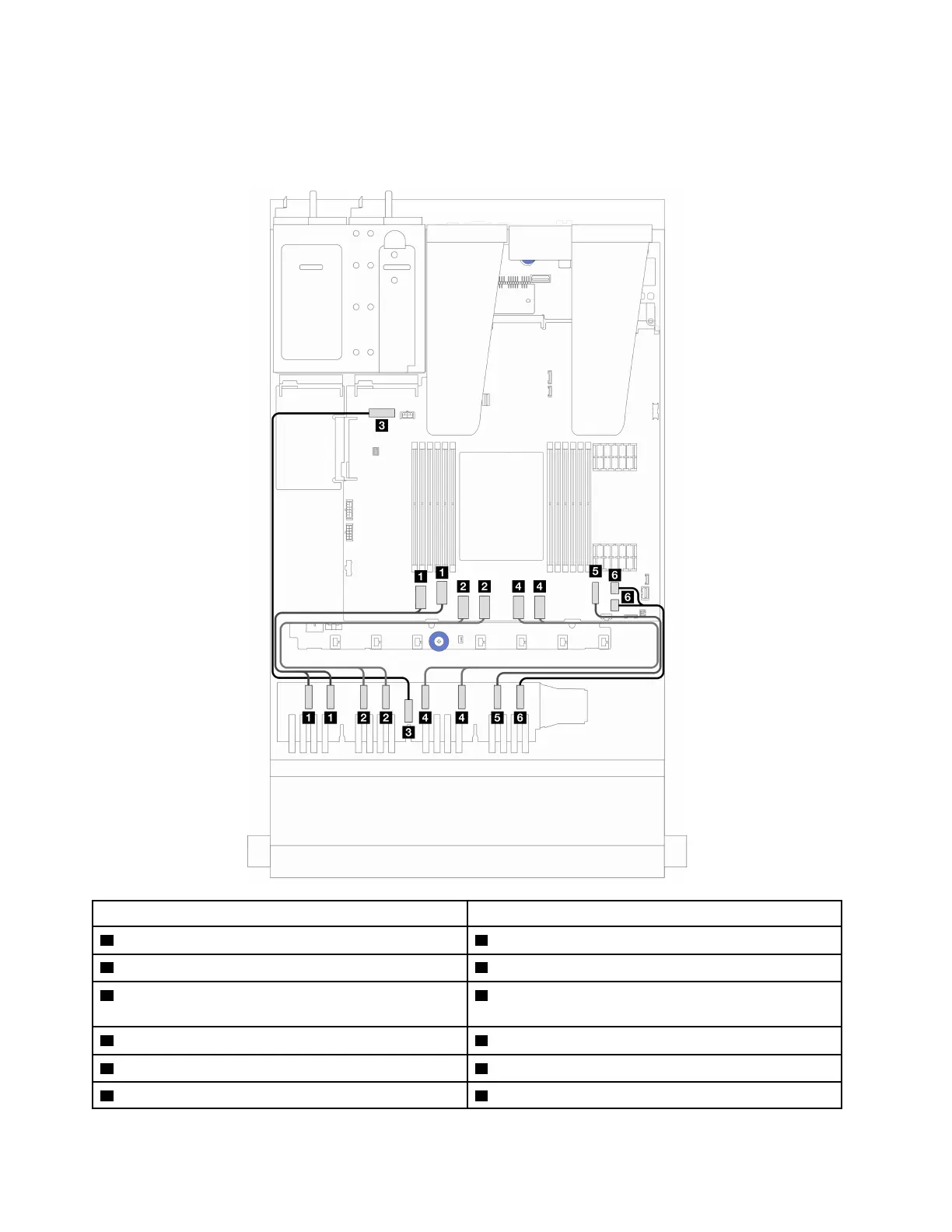 The following table shows the cabling routing for the 16-EDSFF drive backplane. For the locations of relevant