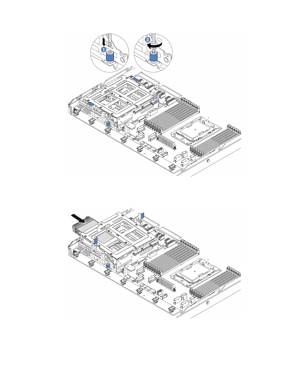 Step 4. Hold and lift the two blue handles. Install the hot-swap drives in the middle drive cage.
