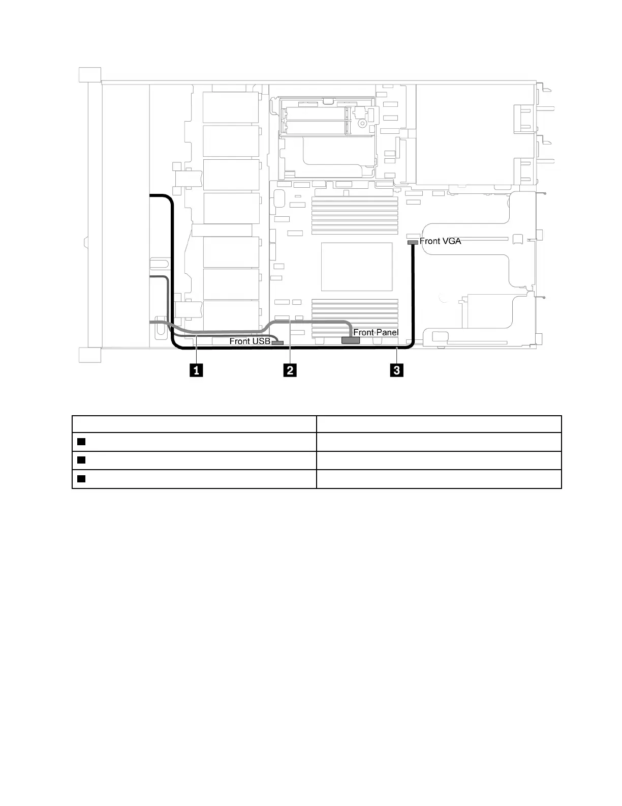 Figure 61. VGA/USB/Front panel connector cable routing for server model with four 3.5-inch drive bays