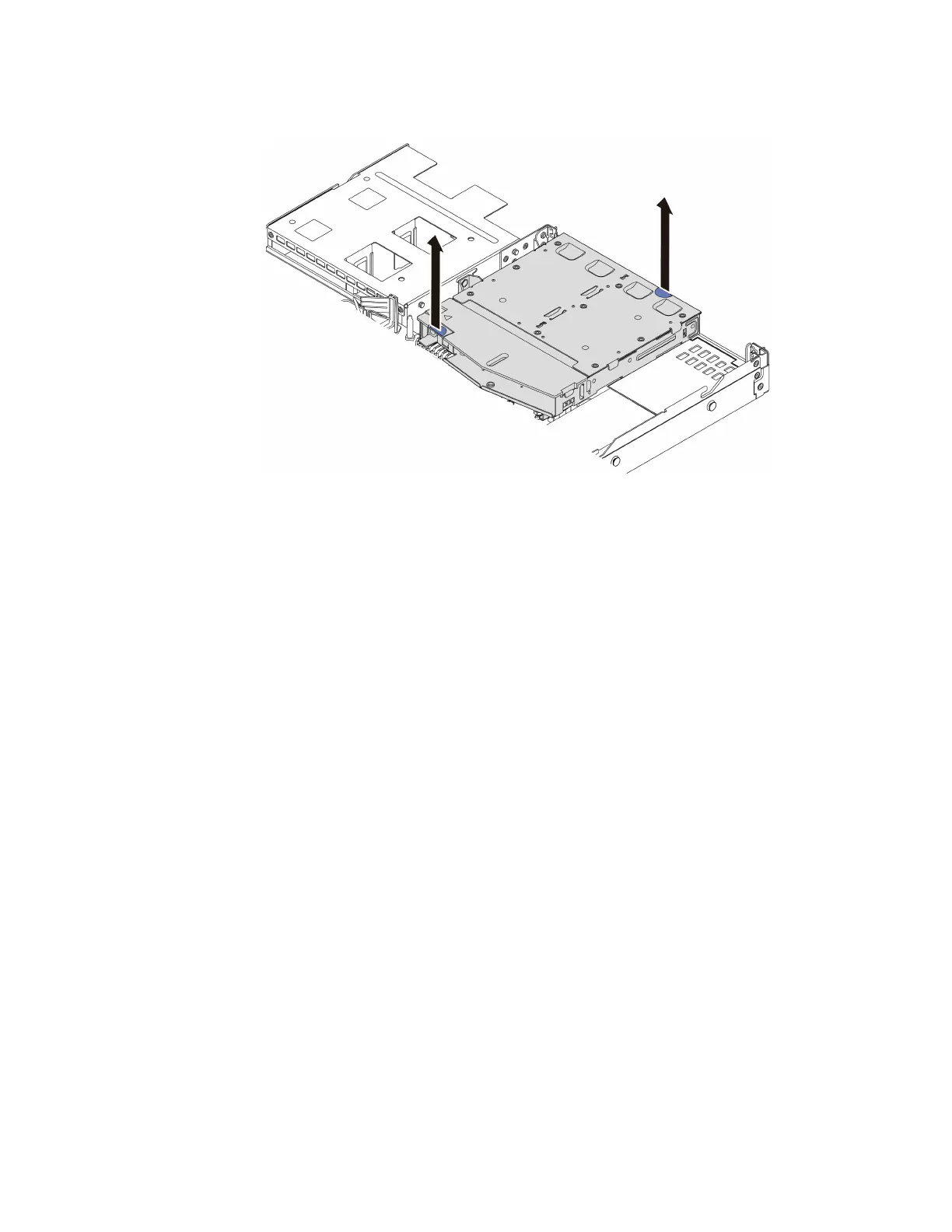 Step 4. Hold the two blue touch points and directly lift the hot-swap rear drive cage out of the chassis.