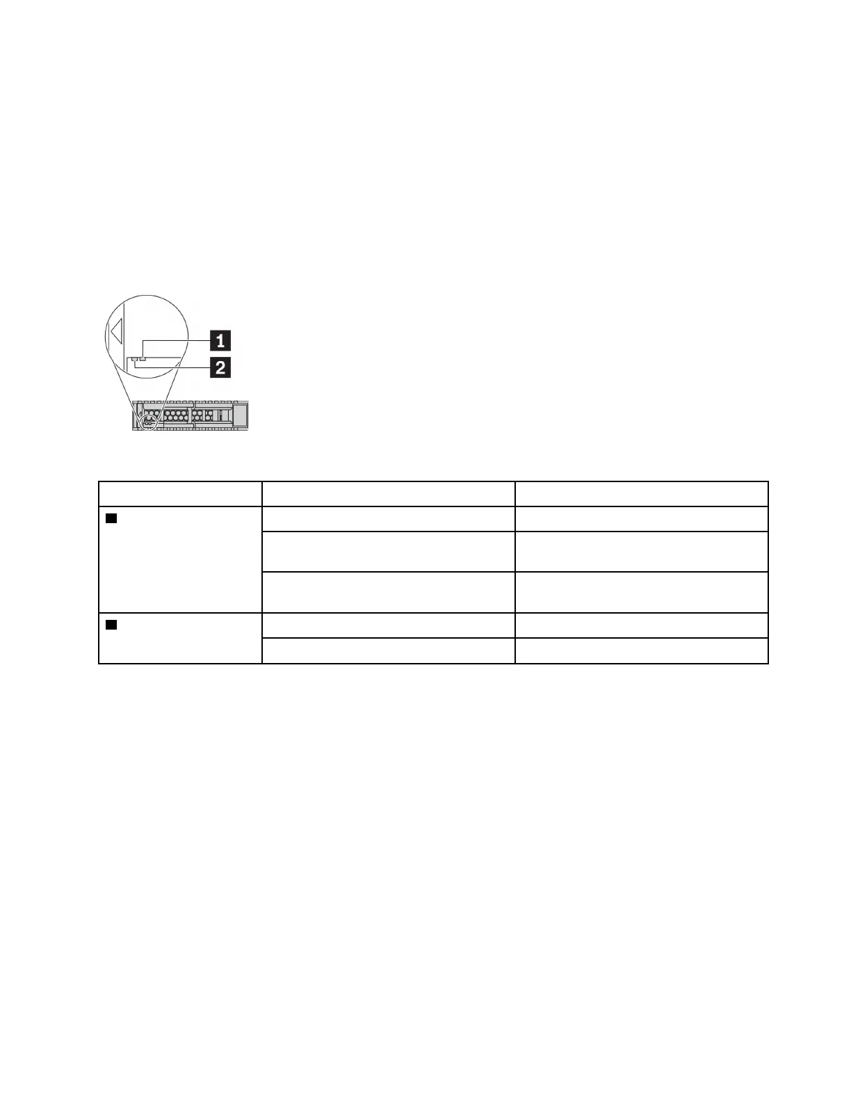 illustration shows the LEDs on a Hard disk drive or solid–state drive.