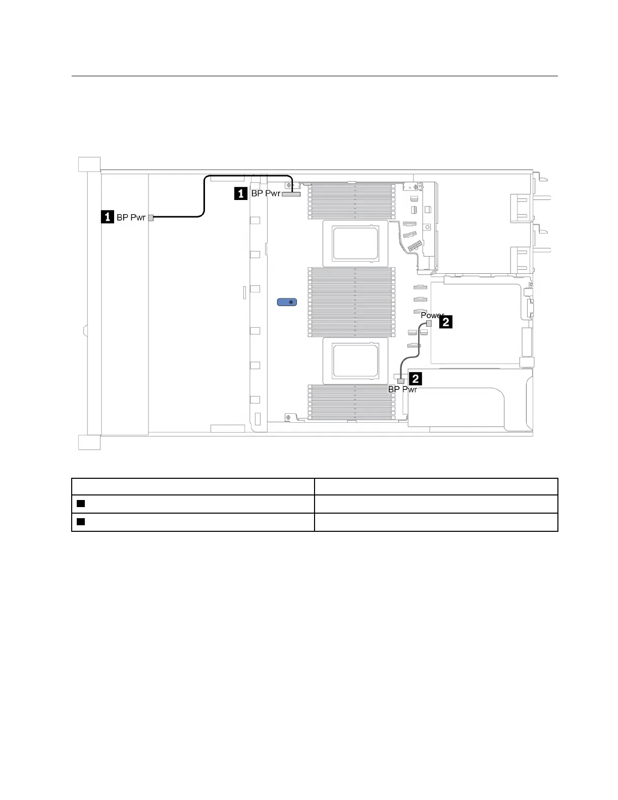 2 Power connector on the rear drive backplane Power connector on riser card on riser 1 assembly