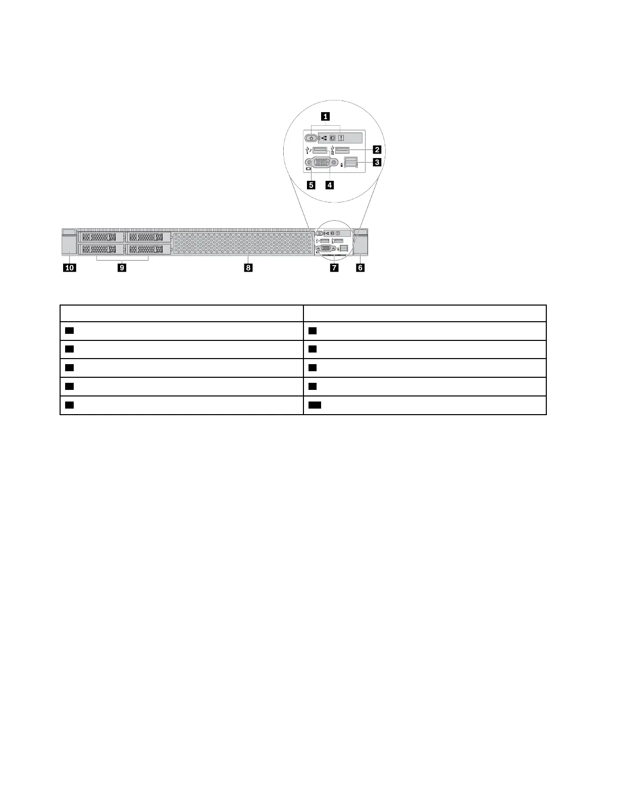 9 Drive bay fillers (4) 10 Rack latch (left)