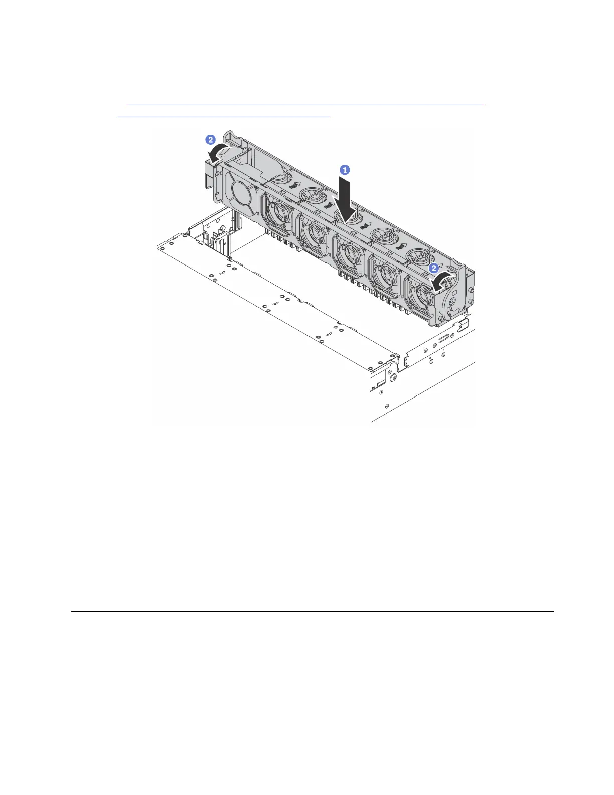 Step 2. Rotate the levers of the system fan cage to the front of the server to secure the system fan cage.
