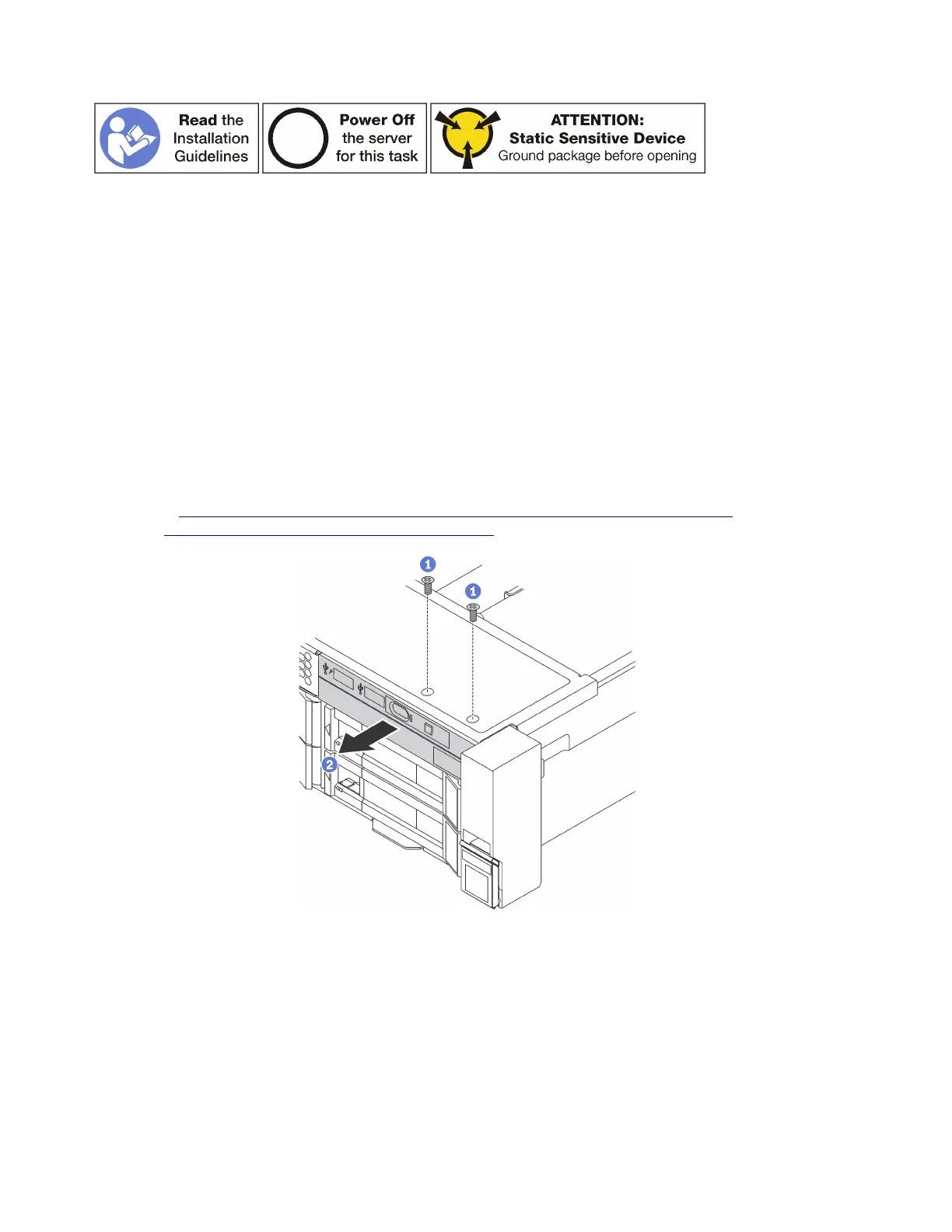 server models with eight 3.5-inch drive bays. The removal procedure is similar for the front I/O assembly for