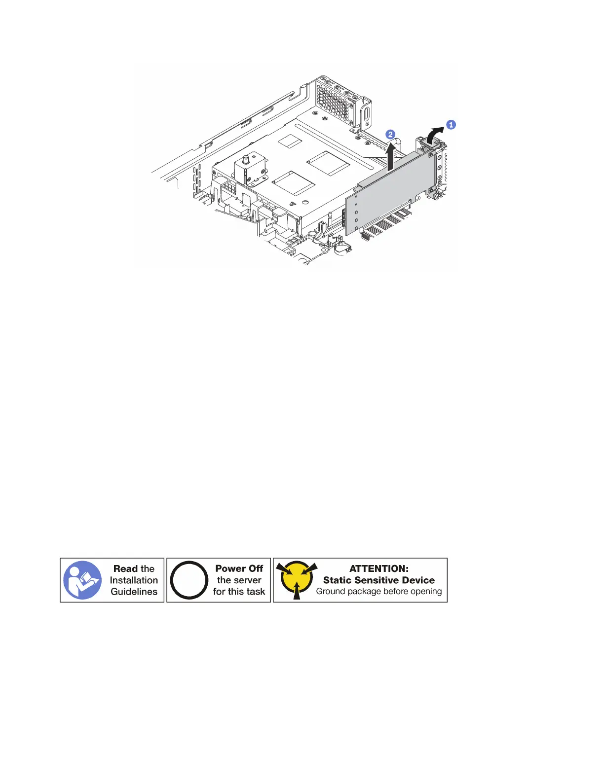 Step 1.  Locate the PCIe slot 4. Then, pivot the PCIe adapter retention latch to the open position.