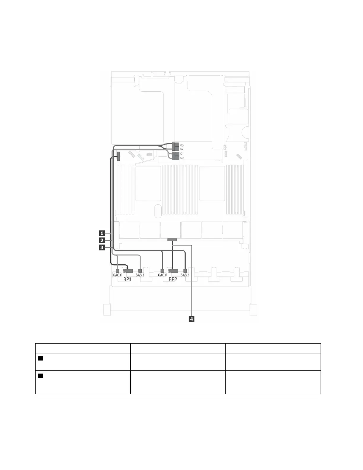 1 Power cable for front backplane 1 Power connector on front backplane
