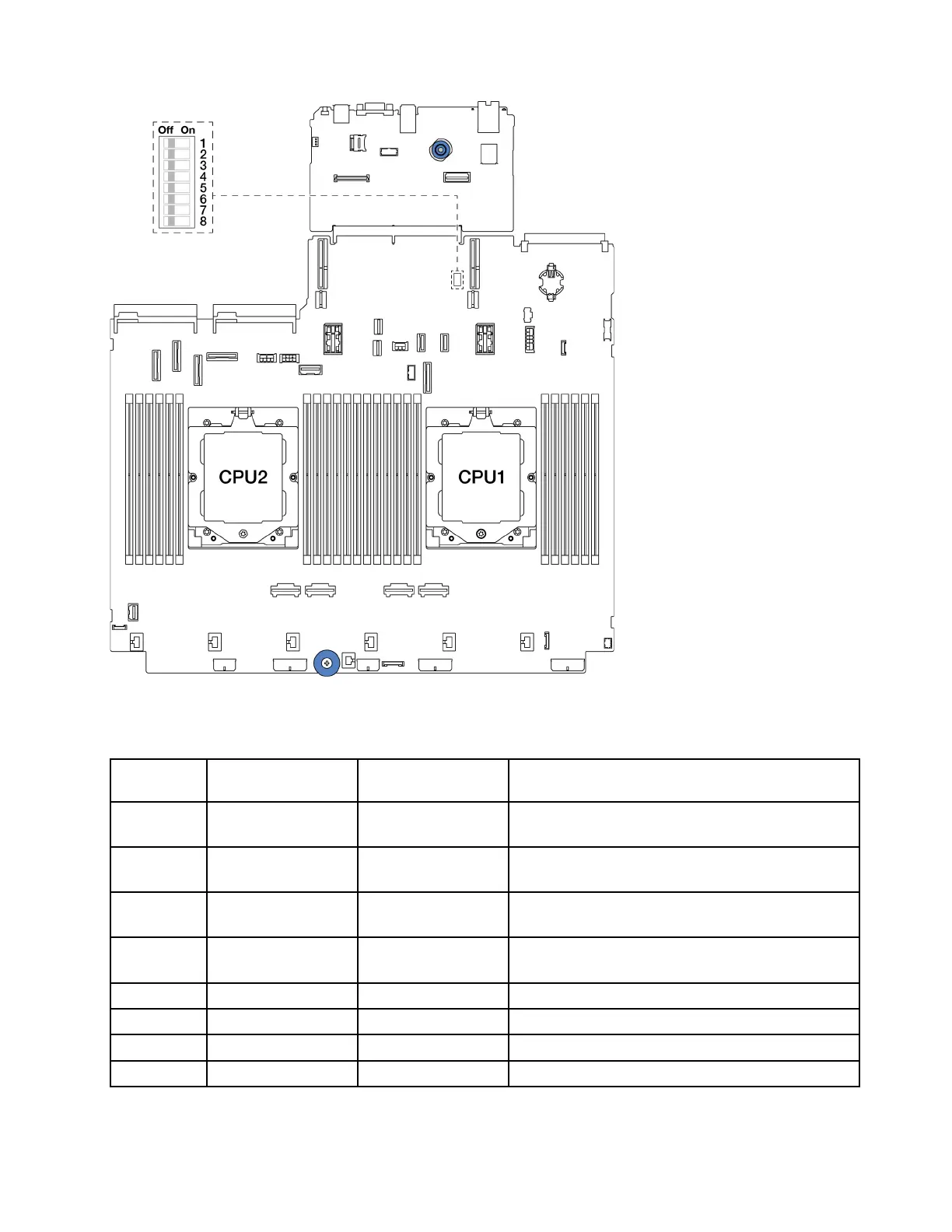 Table 21. Switch block on the system board assembly