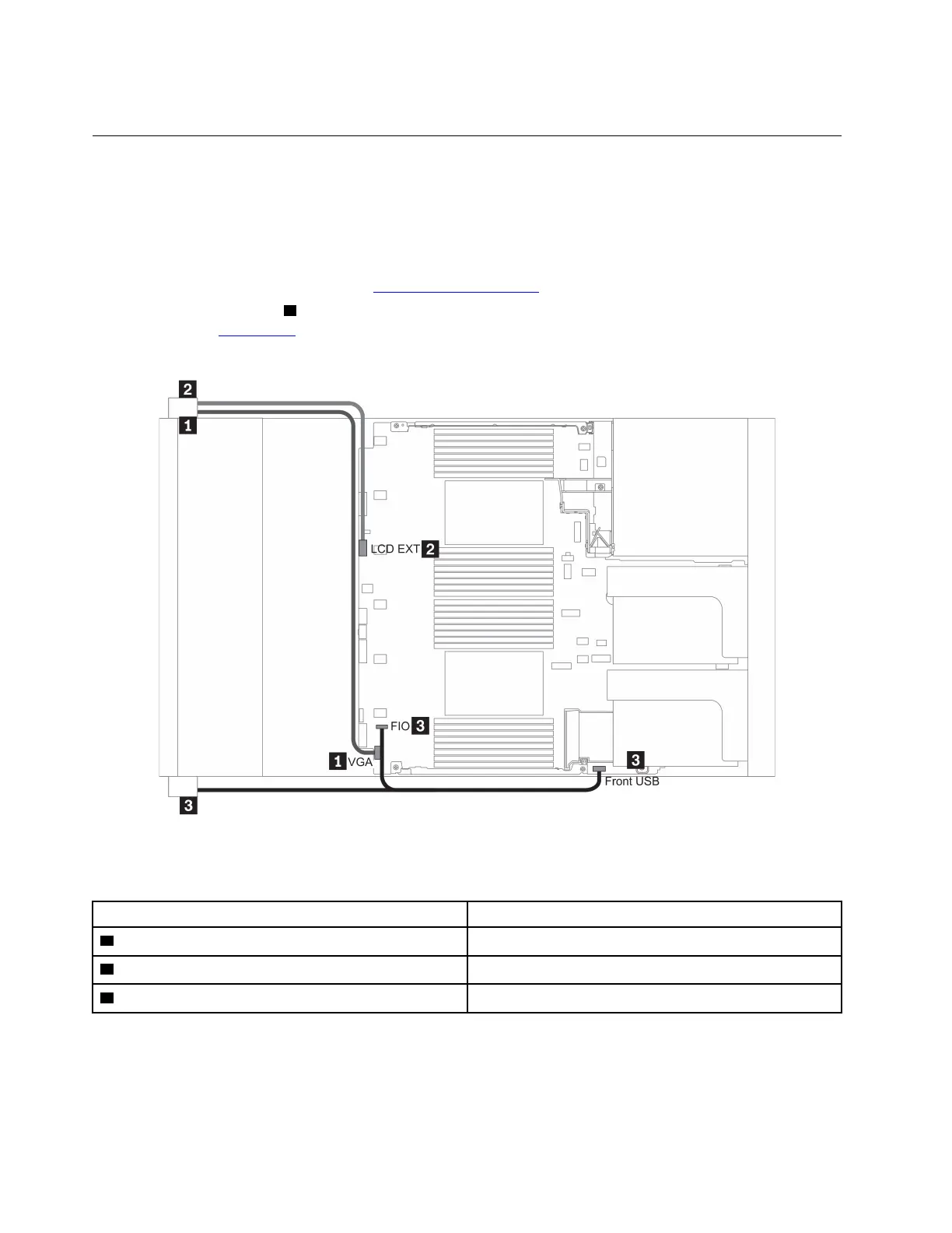 3 Front USB and panel cable on the right rack latch Front I/O and front USB connectors on the system board
