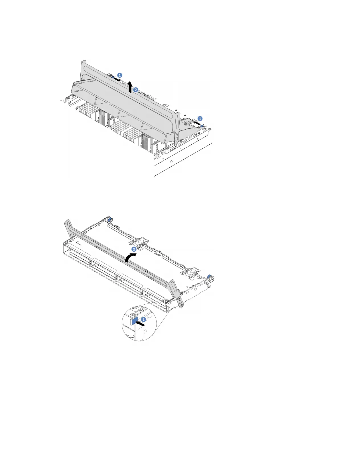 Figure 106. Closing the handle for the middle 3.5-inch drive cage