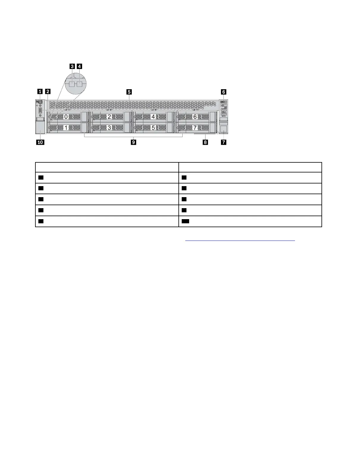 The following illustration shows the front view of server models with eight 3.5-inch front drive bays.