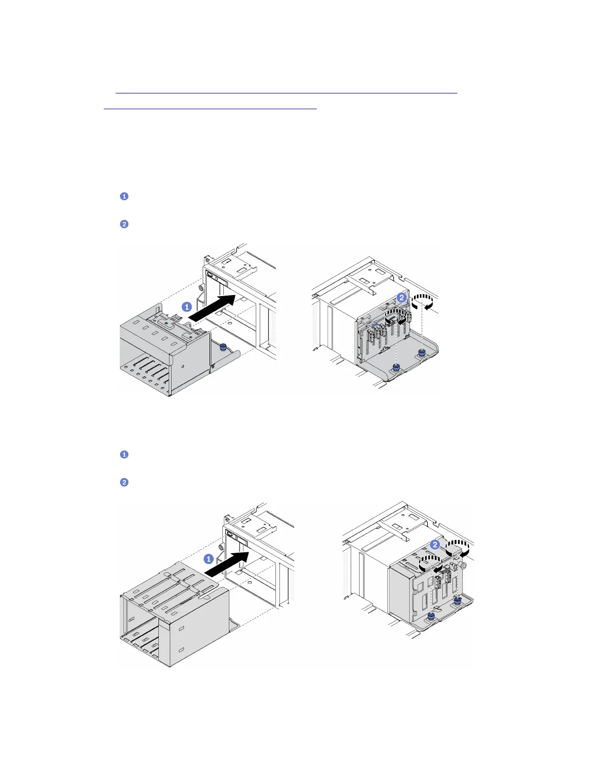 Fasten the two thumbscrews to secure the drive cage assembly to the chassis.