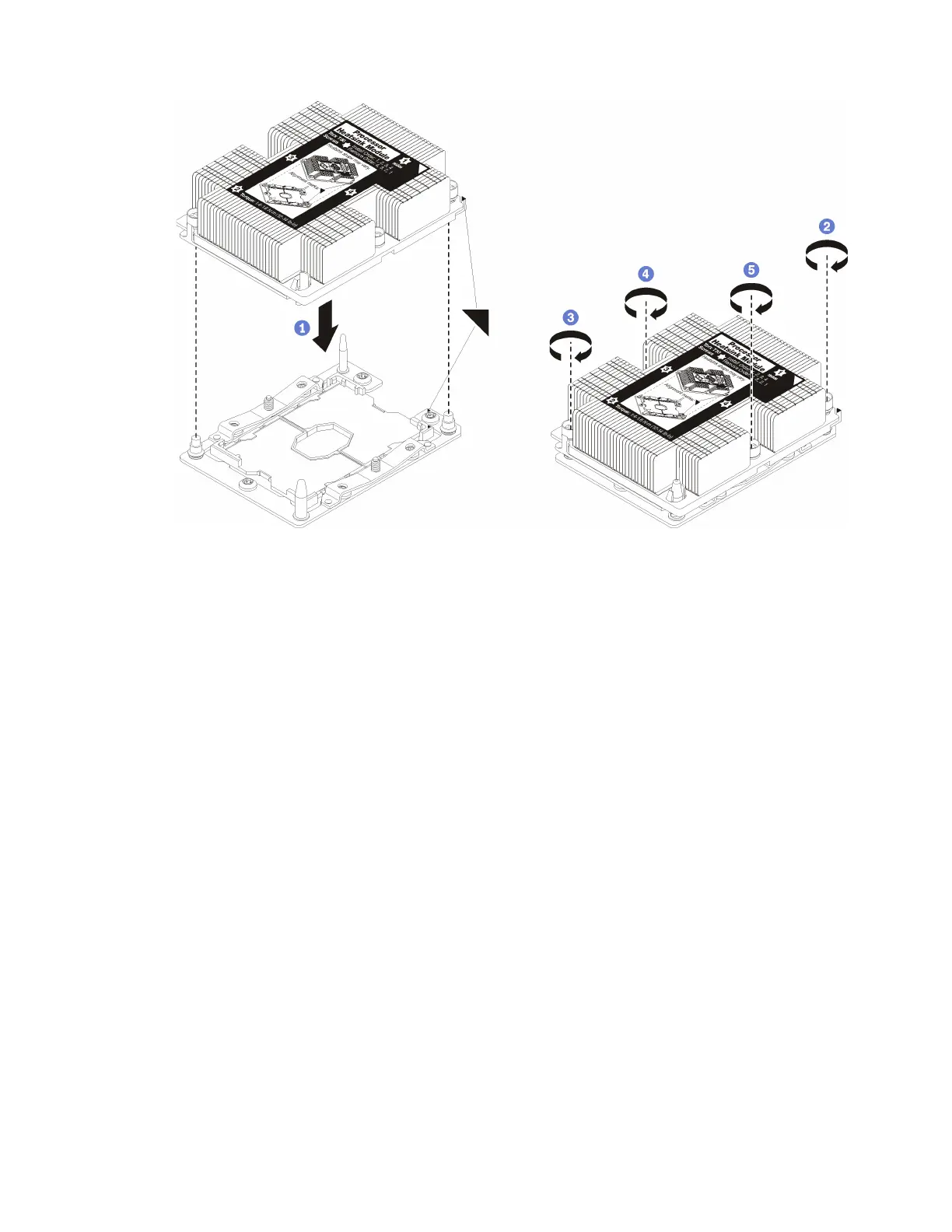 b. Fully tighten the Torx T30 captive fasteners in the installation sequence shown on the heat-sink