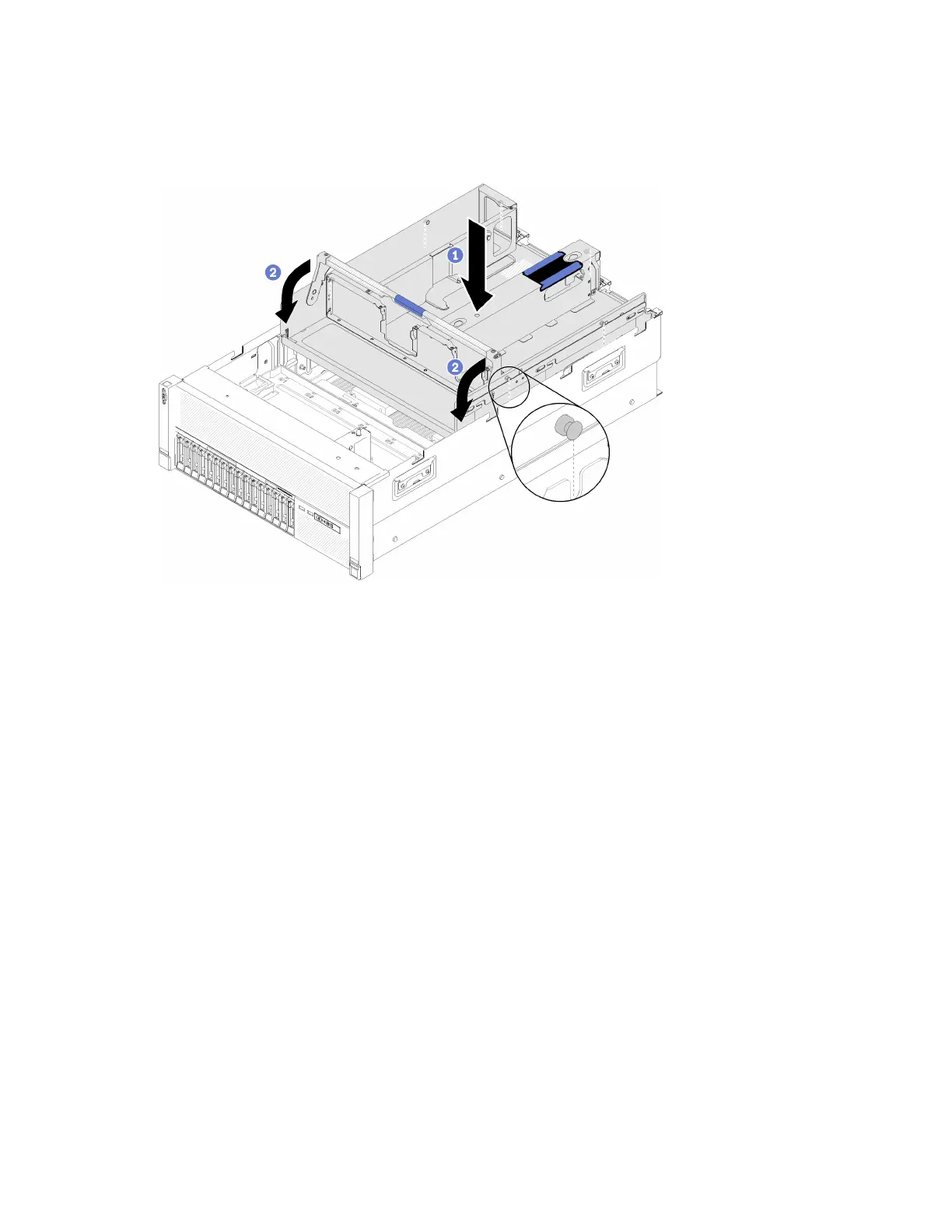 Step 3. Rotate the handle down. Make sure the PCIe expansion tray is fully seated into the server.