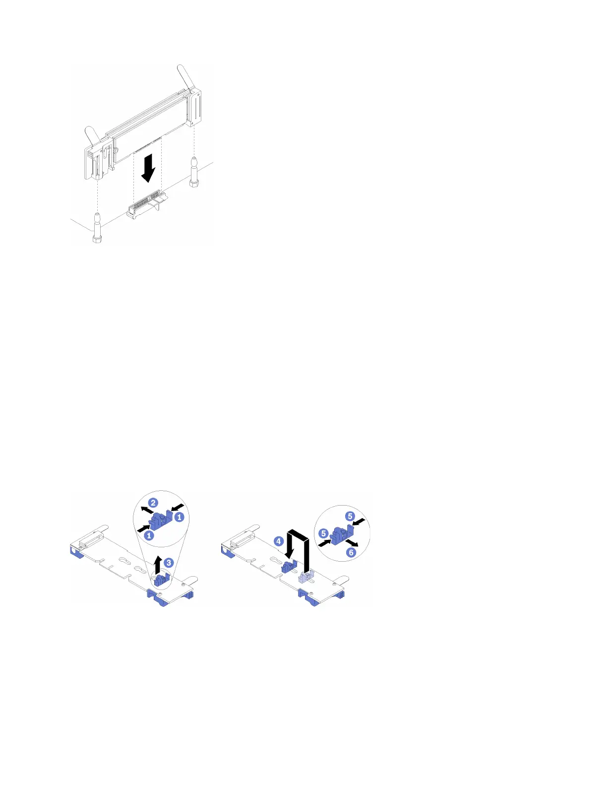 Step 1. Align the openings in the plastic supports at each end of the M.2 backplane with the guide pins on