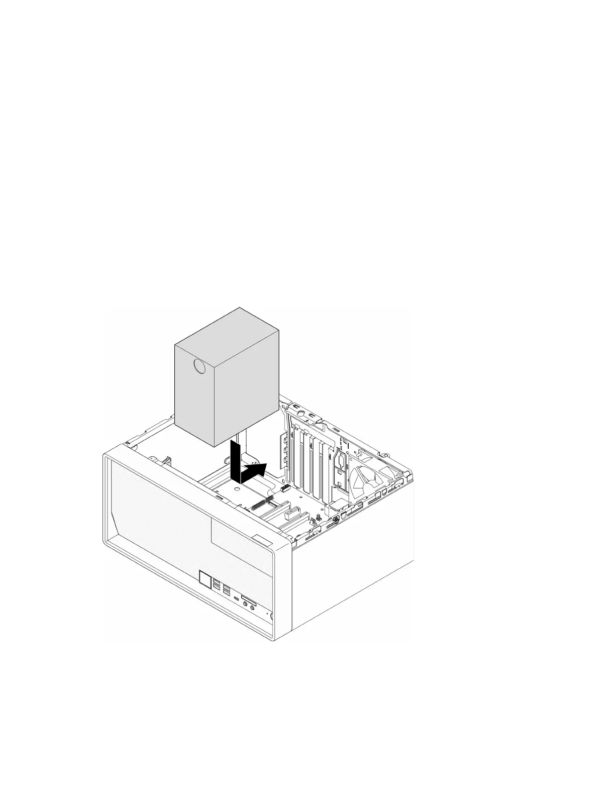 Step 1.  Lower the power supply into the chassis, and slide it toward the opening on the rear side of chassis