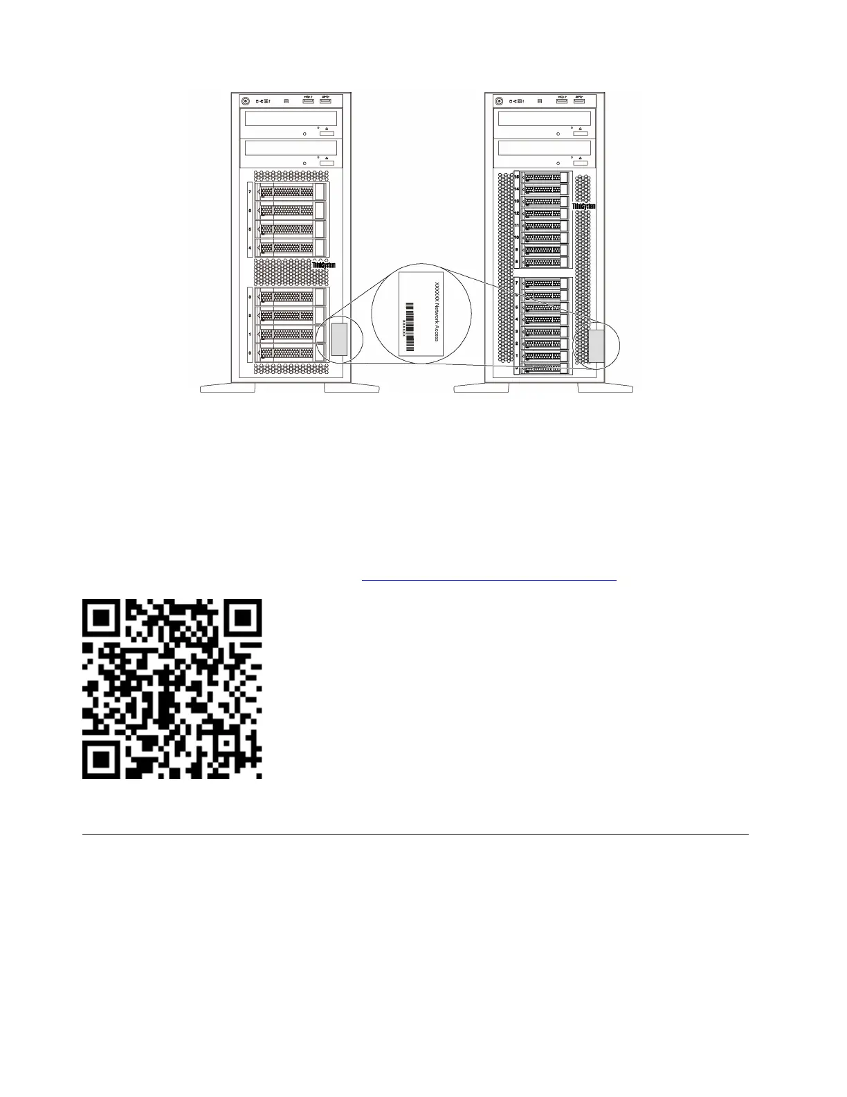 The system service label, which is on the inside of the server cover, provides a quick response (QR) code for