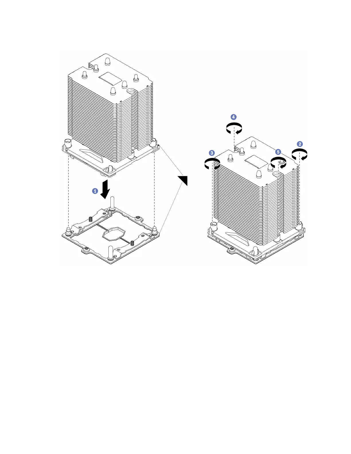 b. Fully tighten the Torx T30 captive fasteners in the installation sequence shown on the heat-sink