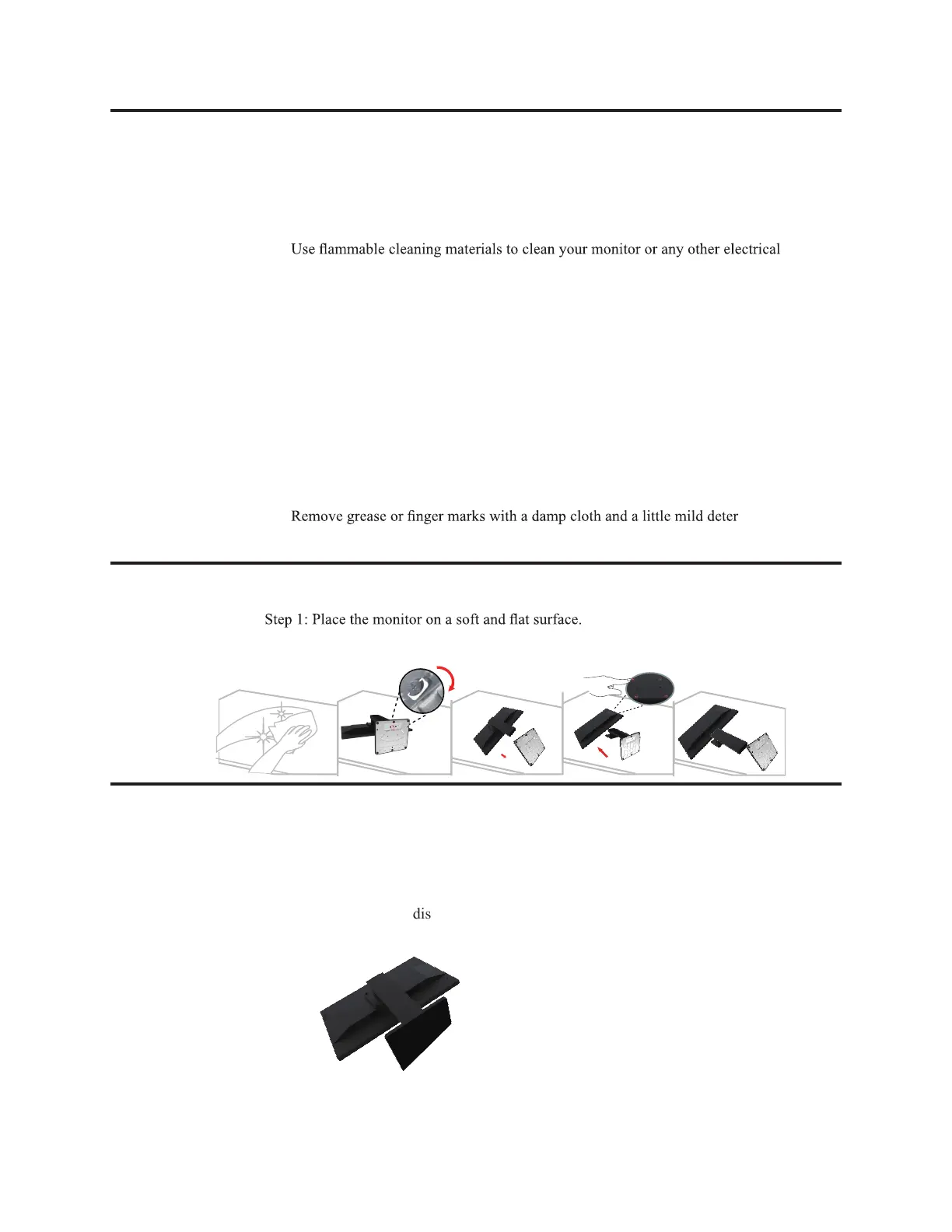 Be sure to turn off the power before you perform any maintenance on the monitor. Do not: