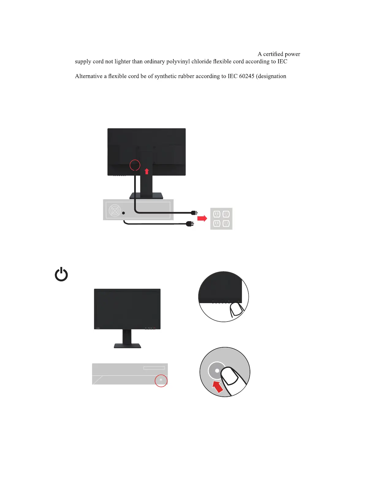 Note: The computer must use certified power cord.The installing and/or equipment