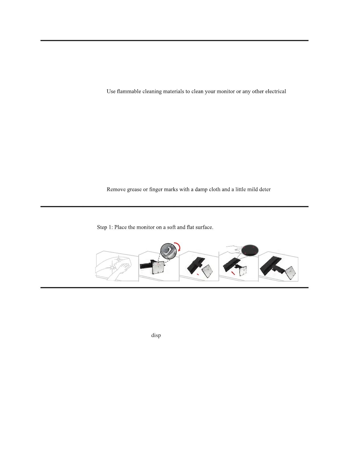 Be sure to turn off the power before you perform any maintenance on the monitor. Do not: