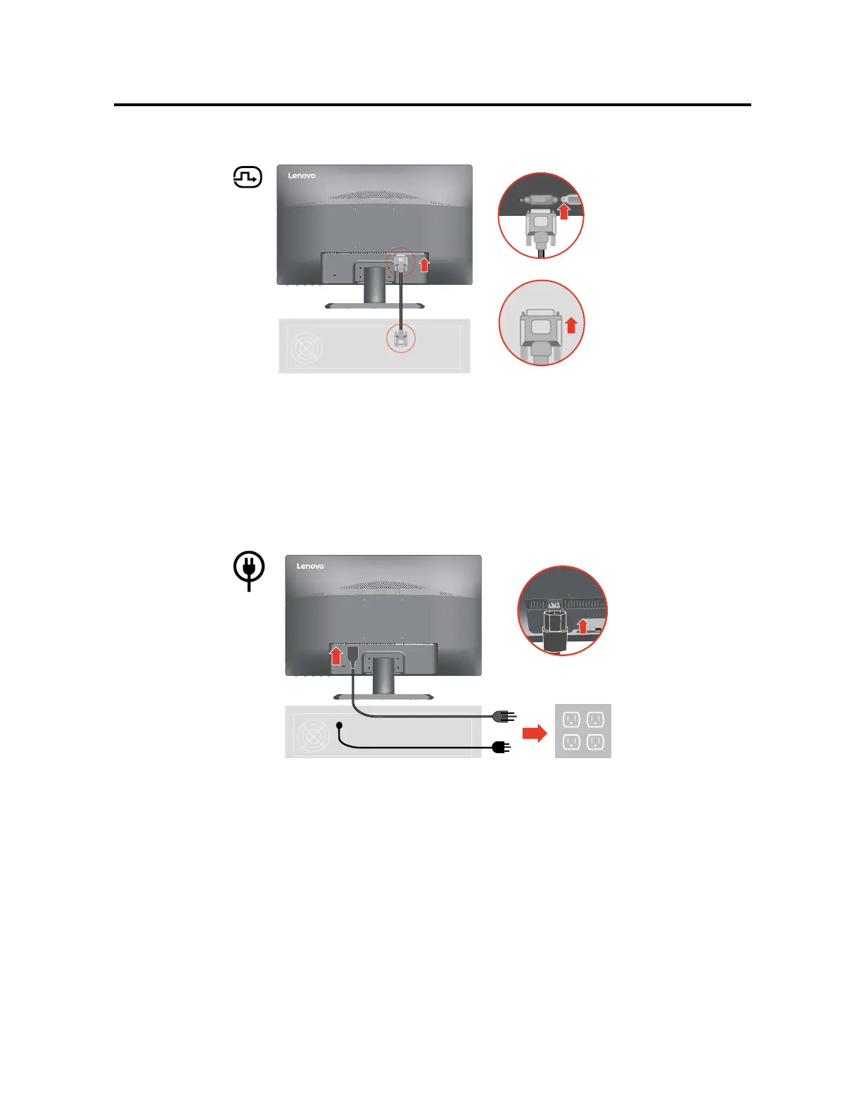 5. Insert the power cord into the monitor, then plug the monitor power cord and the