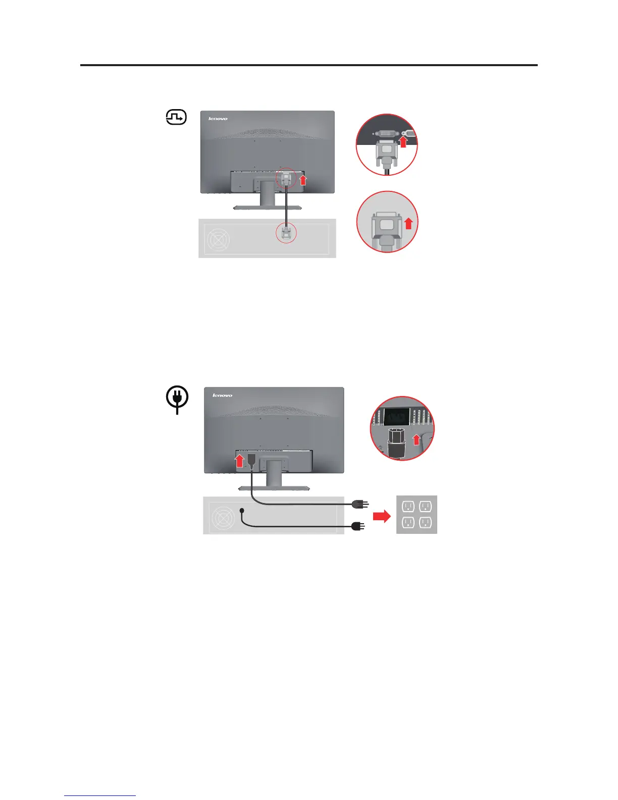 5. Insert the power cord into the monitor, then plug the monitor power cord and the