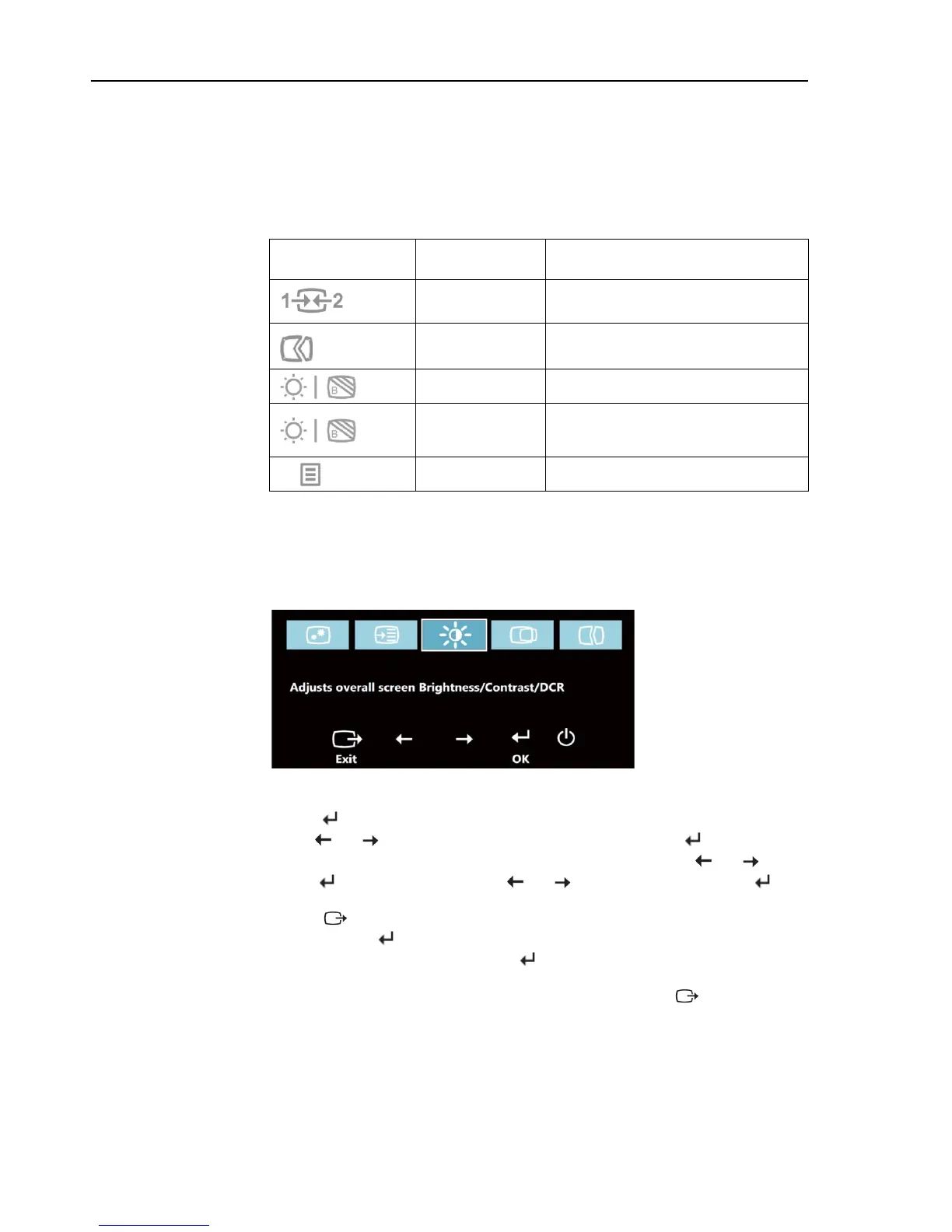 3. Press to move backwards through the sub-menus and exit from the OSD.
