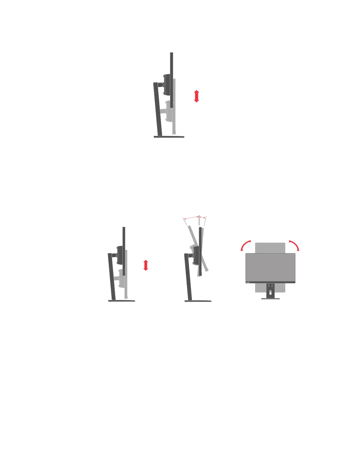 For height adjustment, user needs to press down or lift up the monitor.