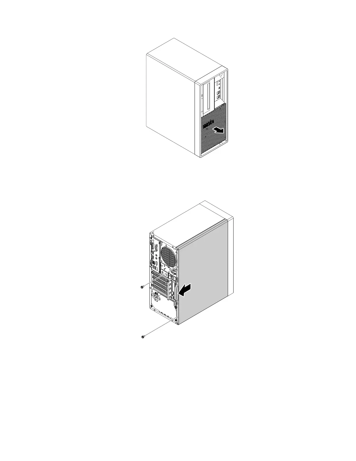 4. Remove the two screws that secure the computer cover. Then, slide the cover to the rear of the