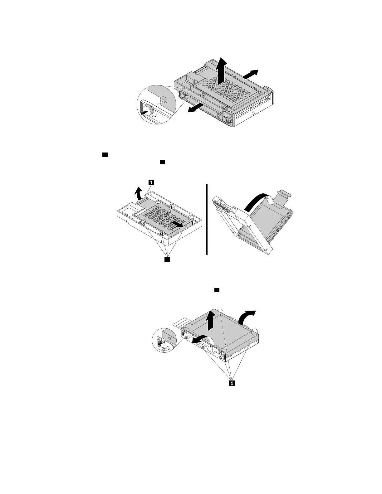 2 . Pivot the adapter as shown to remove it with the storage drive