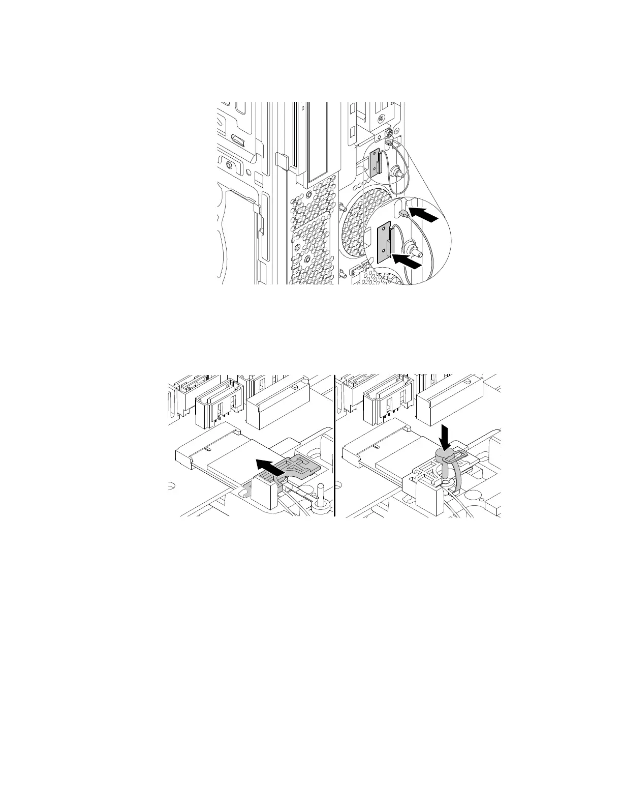 Figure 143. Reinstalling the shield and insert the plug of the retention latch into the hole to secure the Wi-Fi card