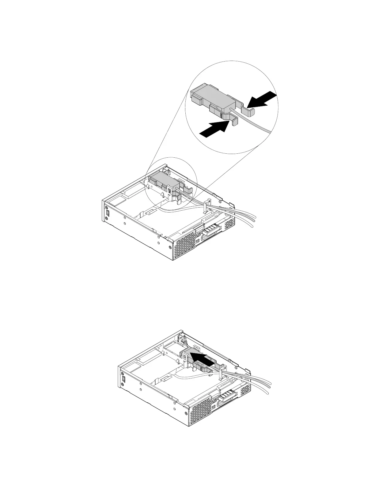 5. Press the two clips toward each other as shown and then pull the eSATA connector or IEEE 1394