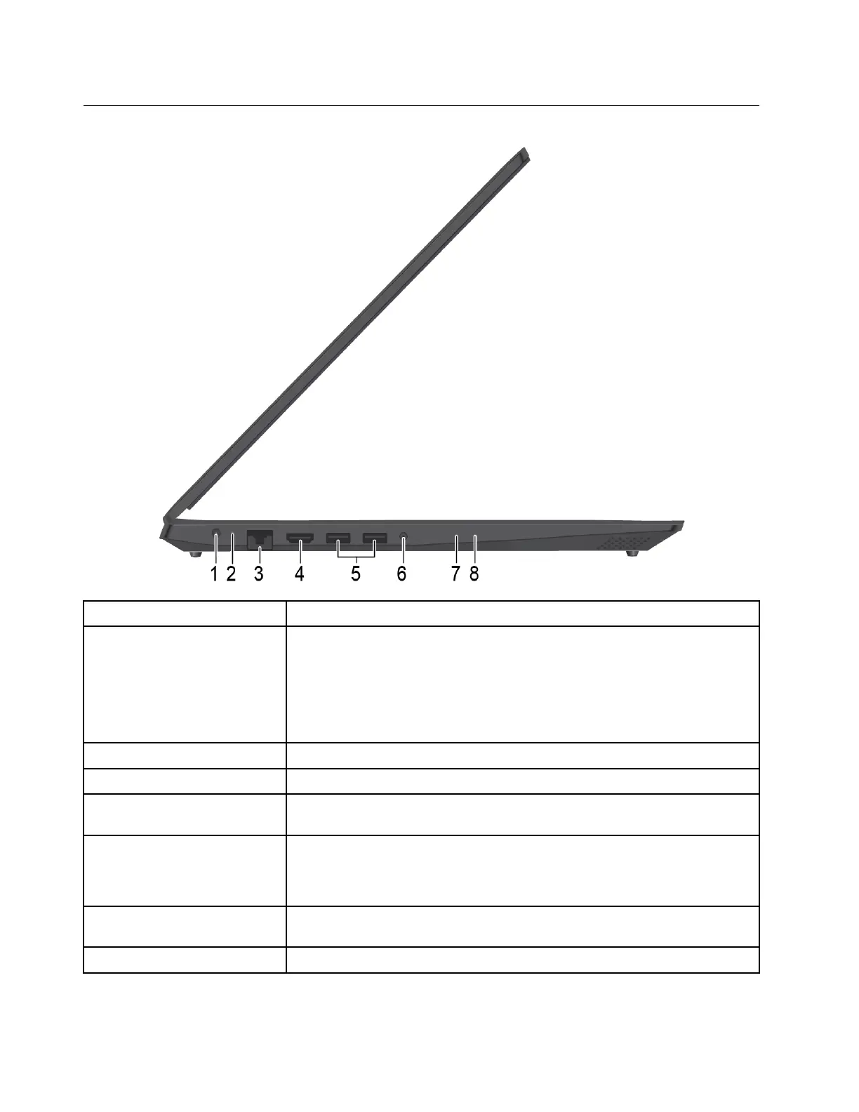 5. USB 3.1 connector Gen 1 Connect USB-compatible devices, such as a USB keyboard, USB mouse, USB