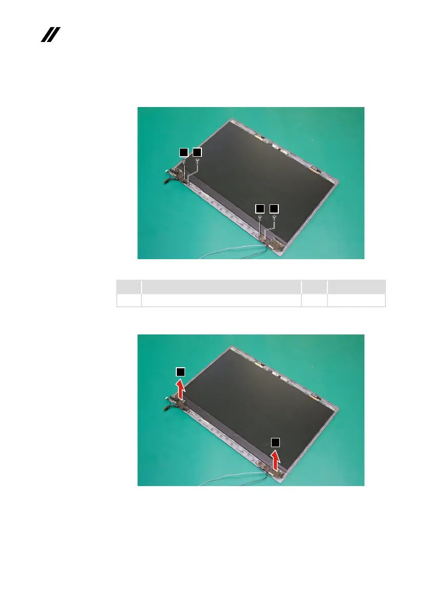 Step8: RemovetheLCDhingesinthedirectionshownbyarrows