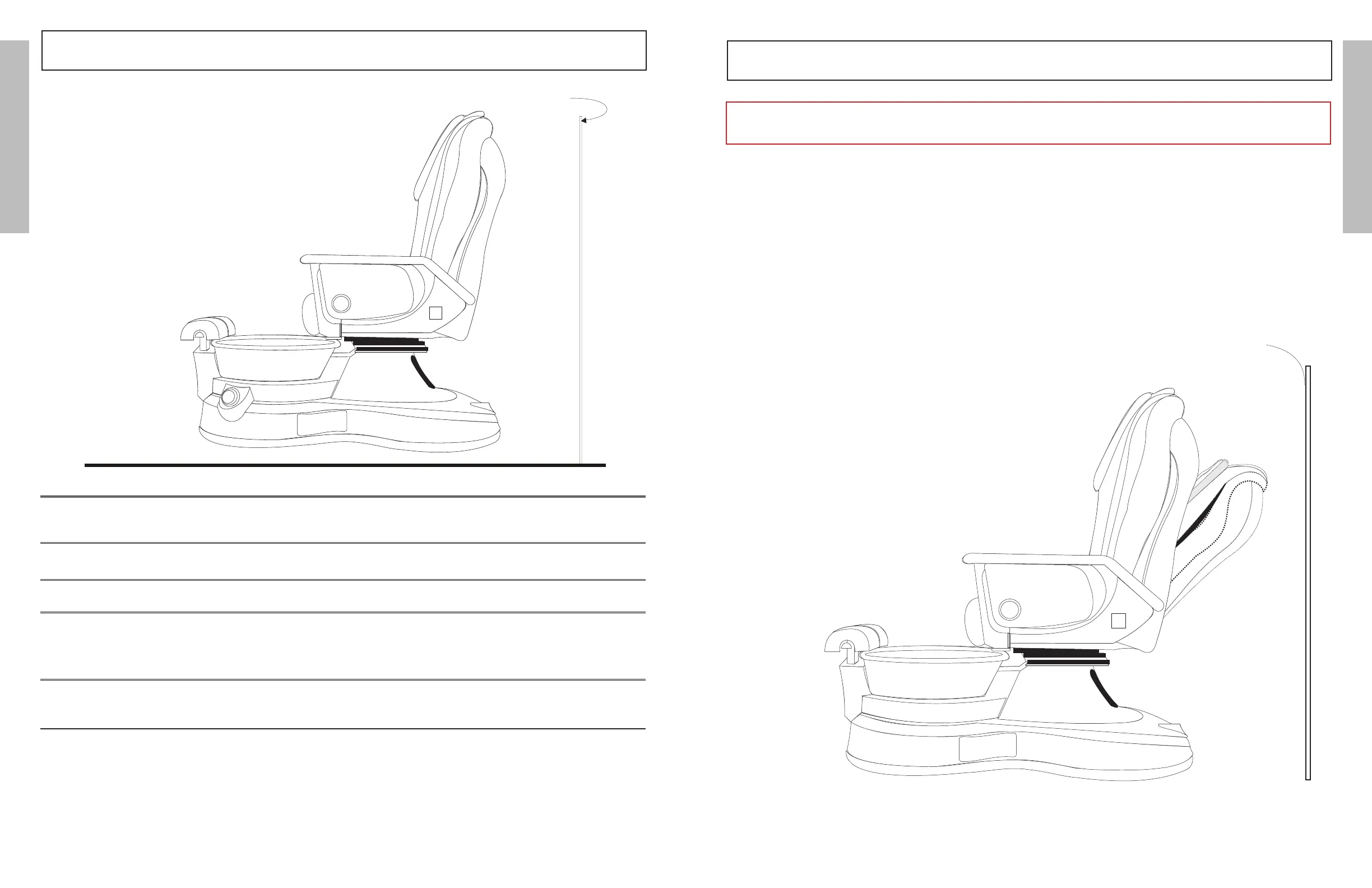 For the seat back to fully recline, the pedicure spa base must be mounted as follow from the wall as