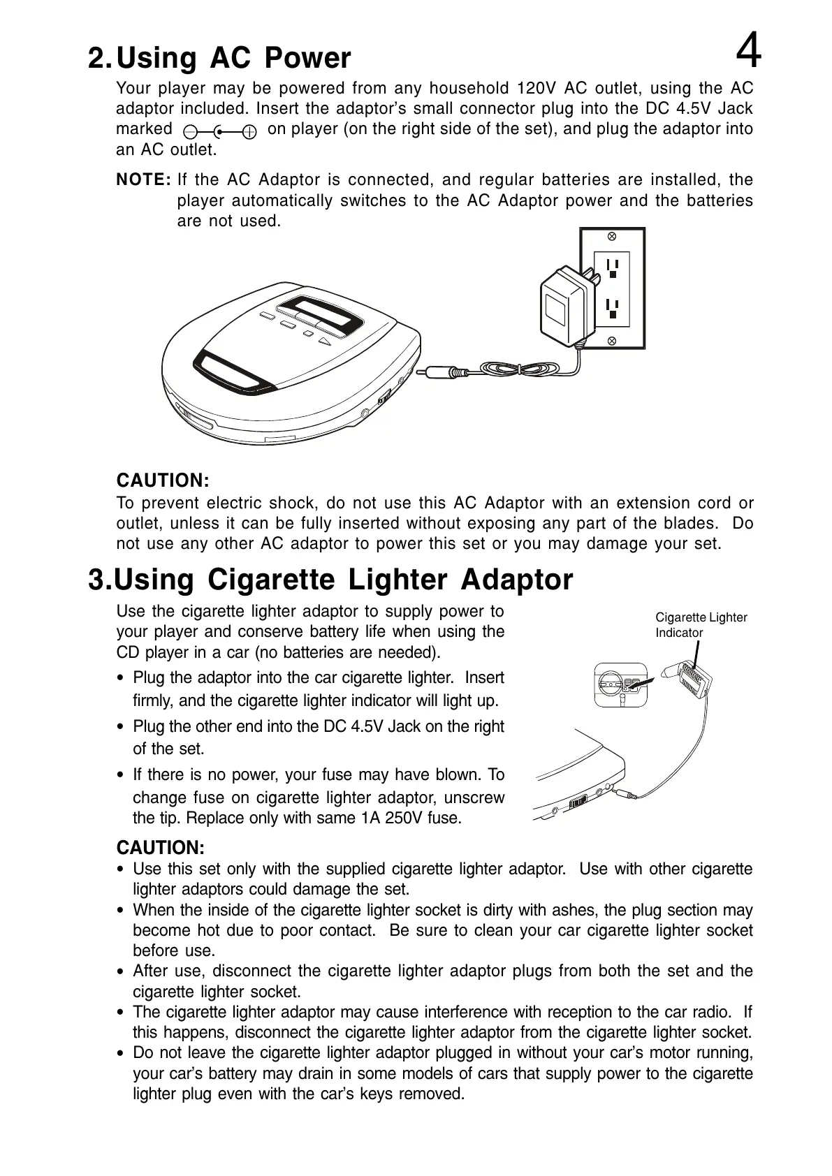 Use this set only with the supplied cigarette lighter adaptor. Use with other cigarette