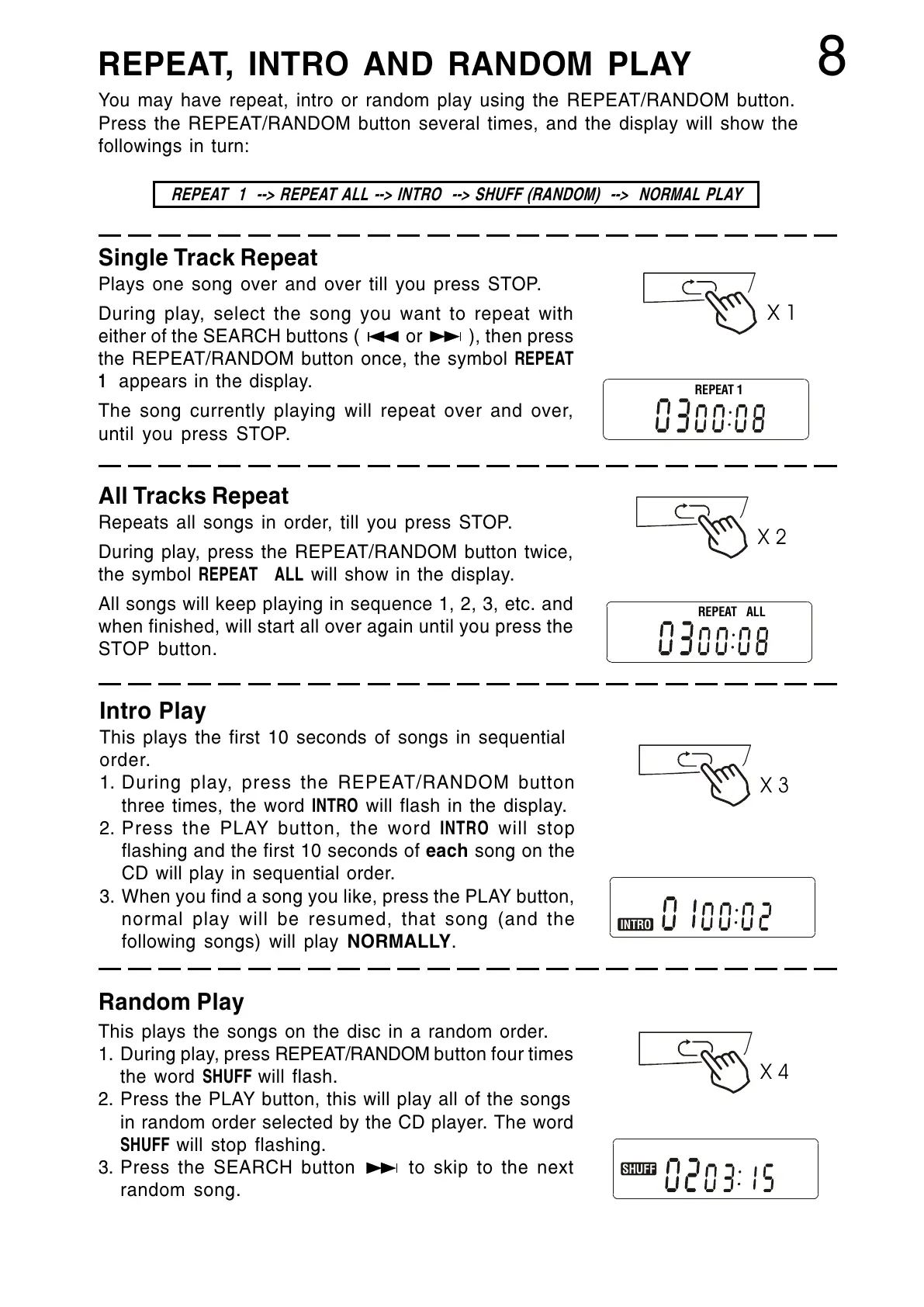 You may have repeat, intro or random play using the REPEAT/RANDOM button.