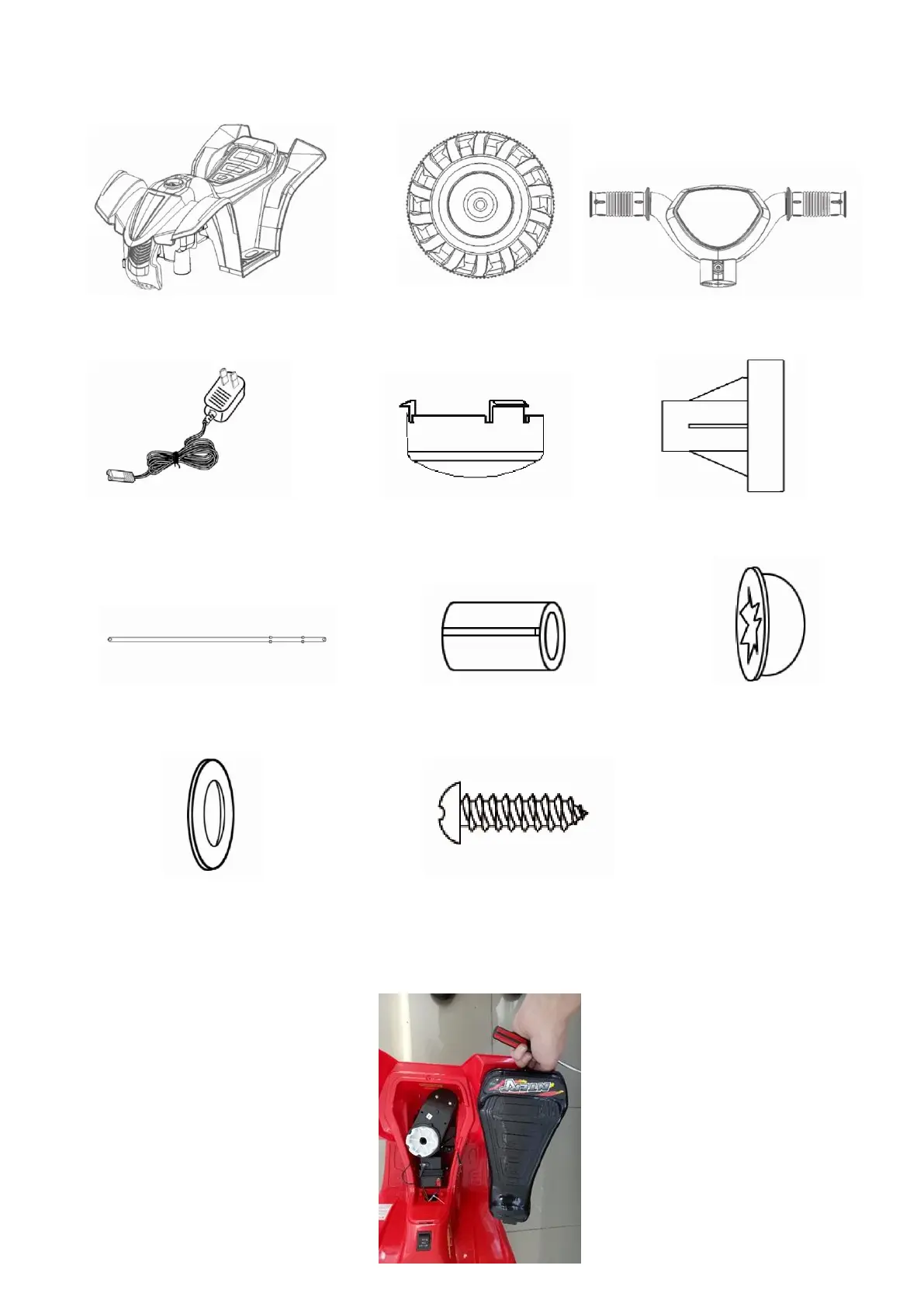 Ride-on body X 1 Wheels X 4 Handlebar X 1