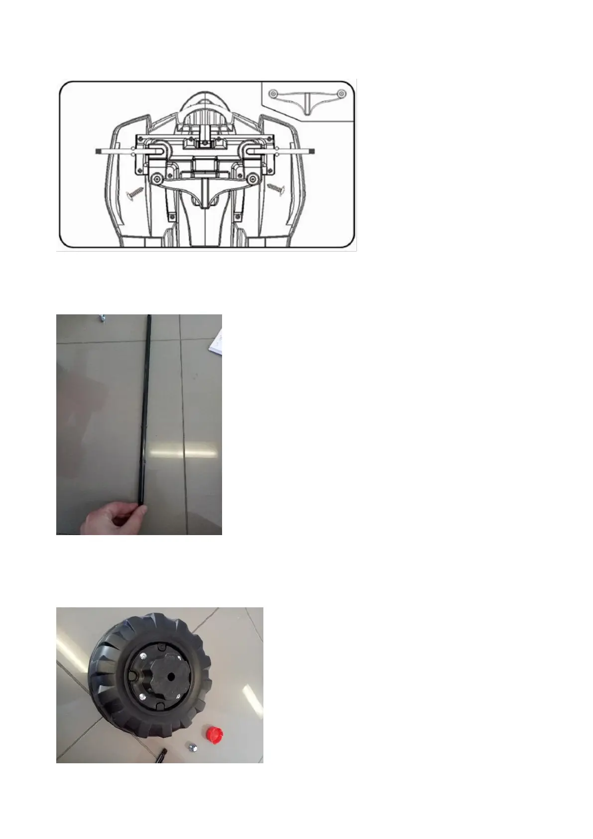 The stand of the front axle is placed on the front axle with two screws as shown.